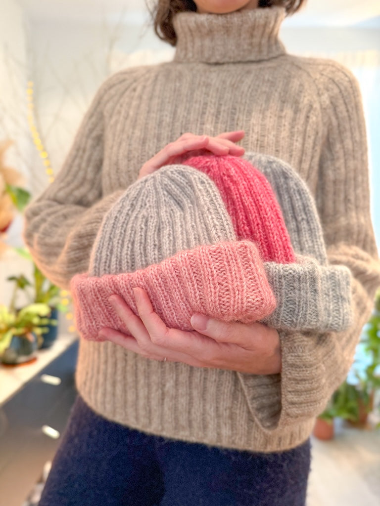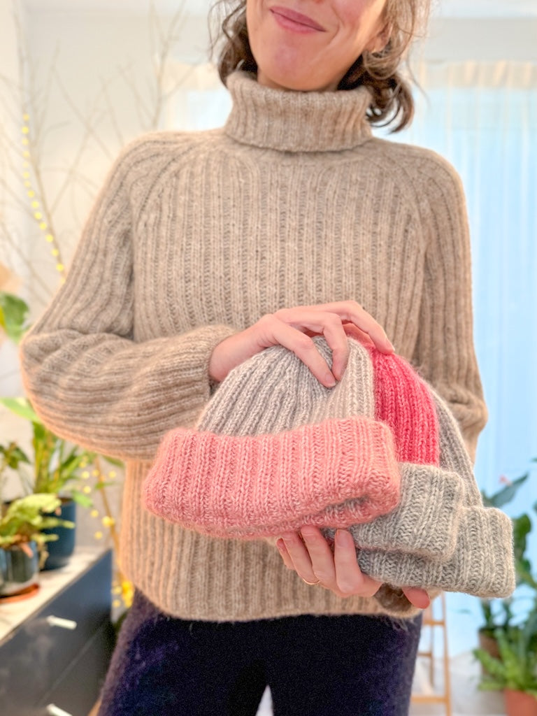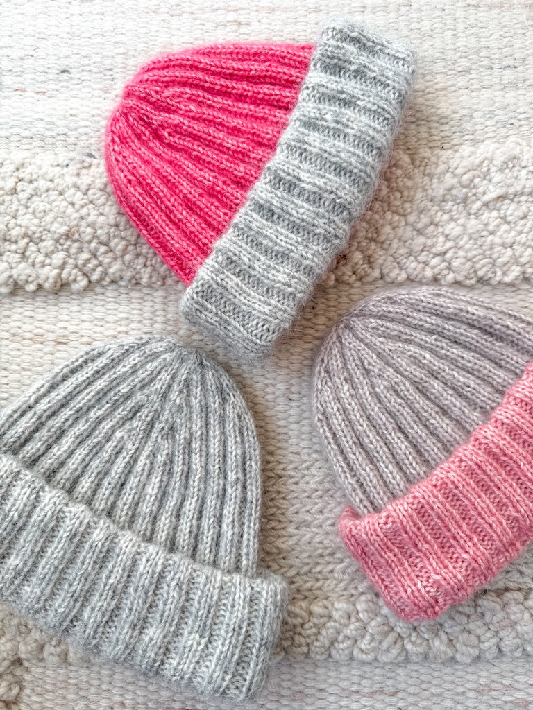 The Charlotte Hat is a beautiful ‘basic’ hat, worked in 2x2 rib stitch, with a double folded brim. It’s your perfect ‘everyday’ hat. The Charlotte Hat is worked top-down, in the round.